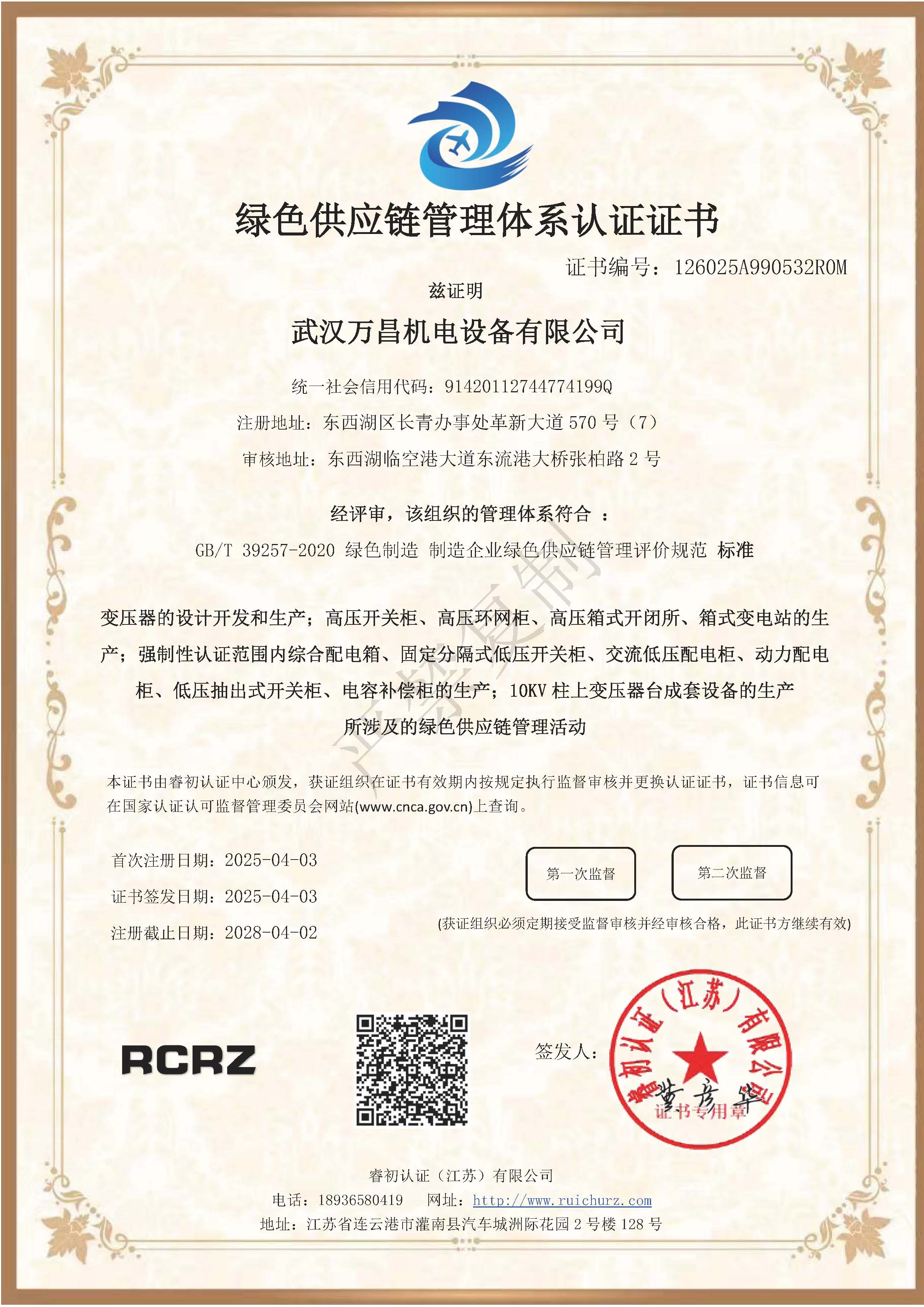 - 環境管理體系認證證書